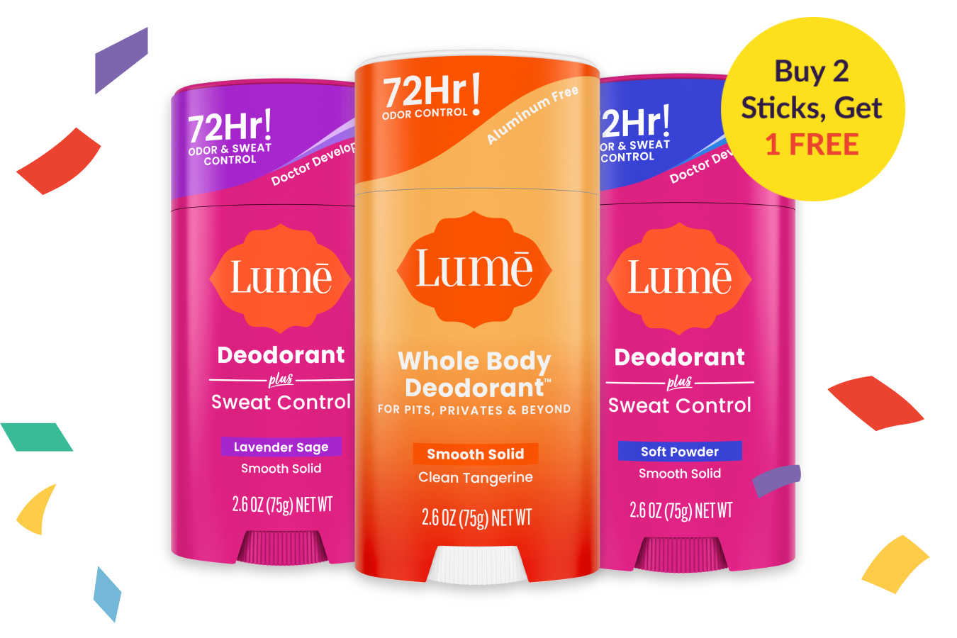 Lume’s new Deodorant + Sweat Control formula delivers powerful, long-lasting protection against both odor and sweat—up to 72 hours. It’s tough where it counts, but still gentle on skin.