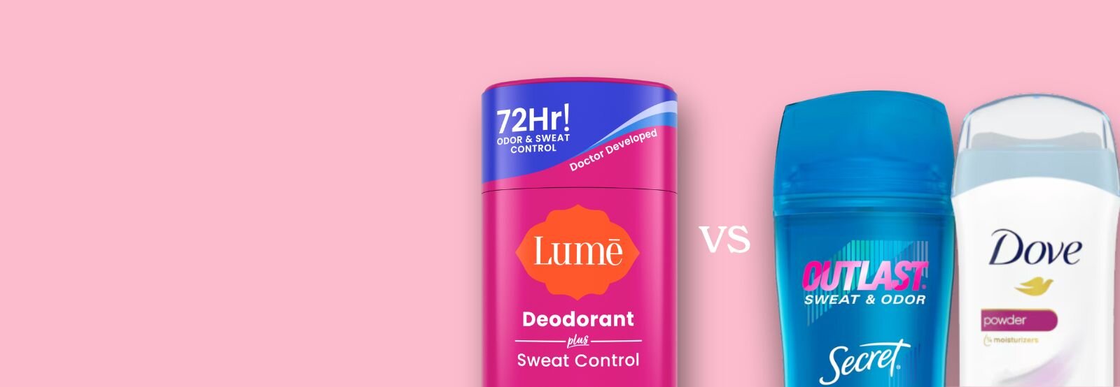 And now, Lume Deodorant plus Sweat Control. Clinically proven to control odor better than Secret & Dove.*