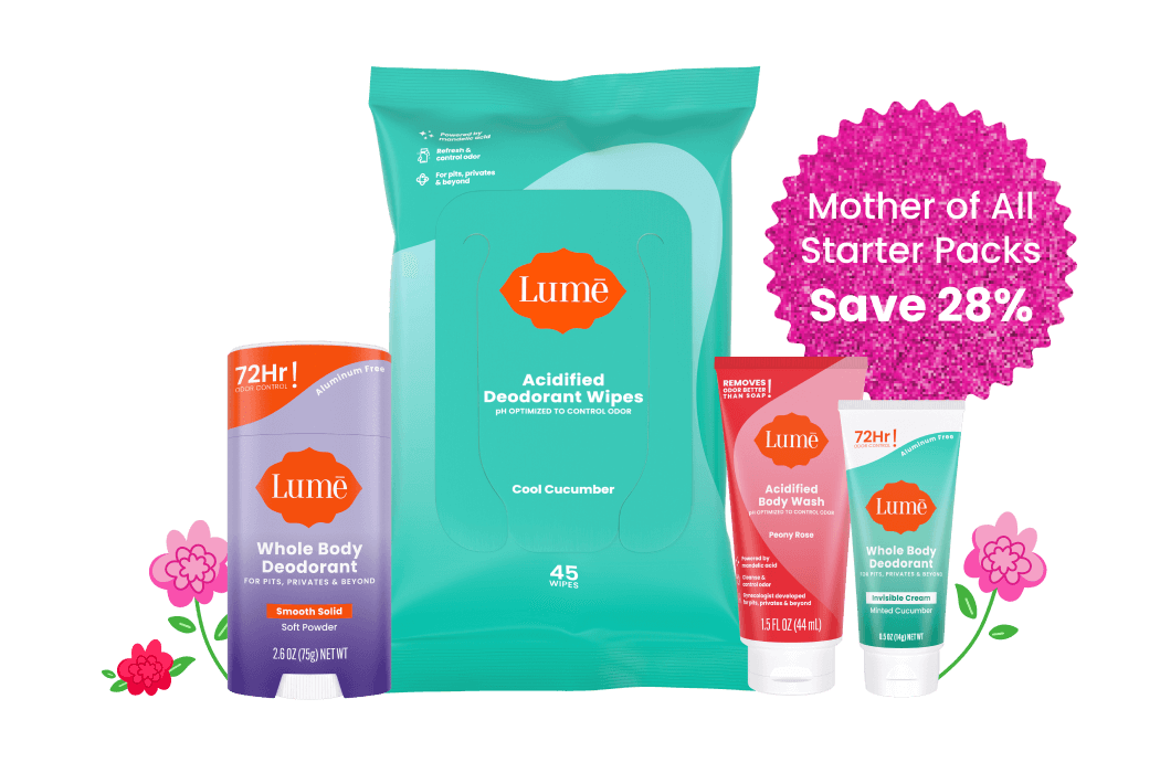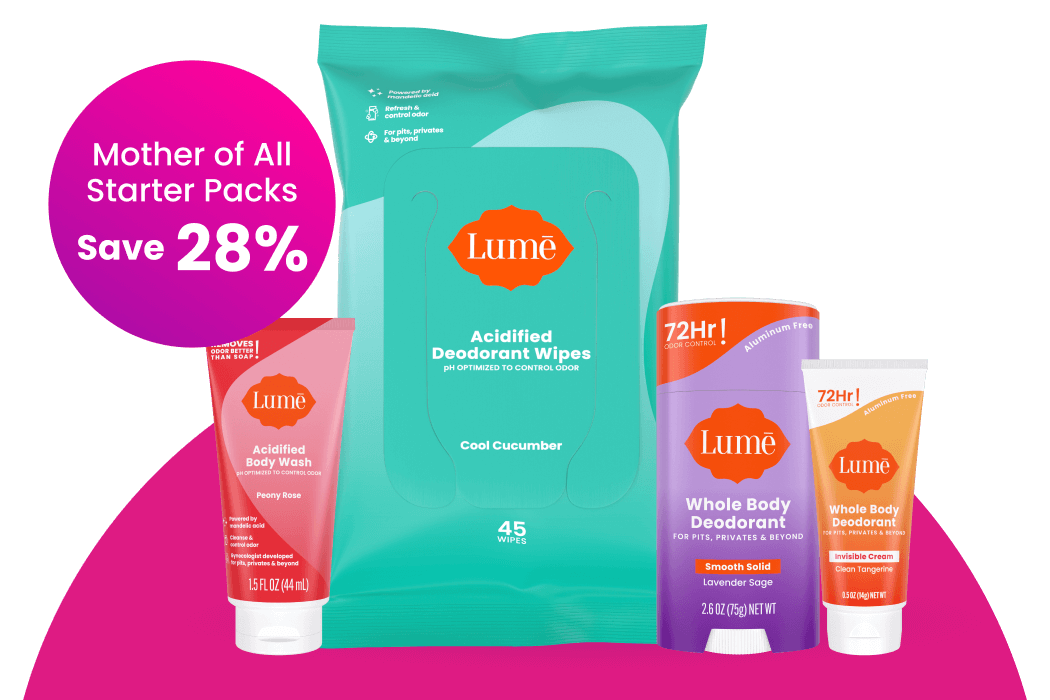 Dr. Shannon Klingman, Founder & CEO, started Lume after seeing firsthand how women’s B.O. was being misdiagnosed and mistreated. Women were often over-prescribed antibiotics as though the vagina was to blame. She proved through clinical testing that most B.O. is caused by bacteria on the skin digesting bodily fluids. The same odor reaction in our underarms happens EVERYWHERE on our body.