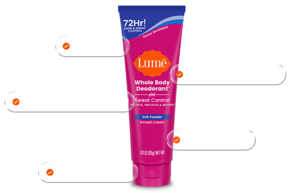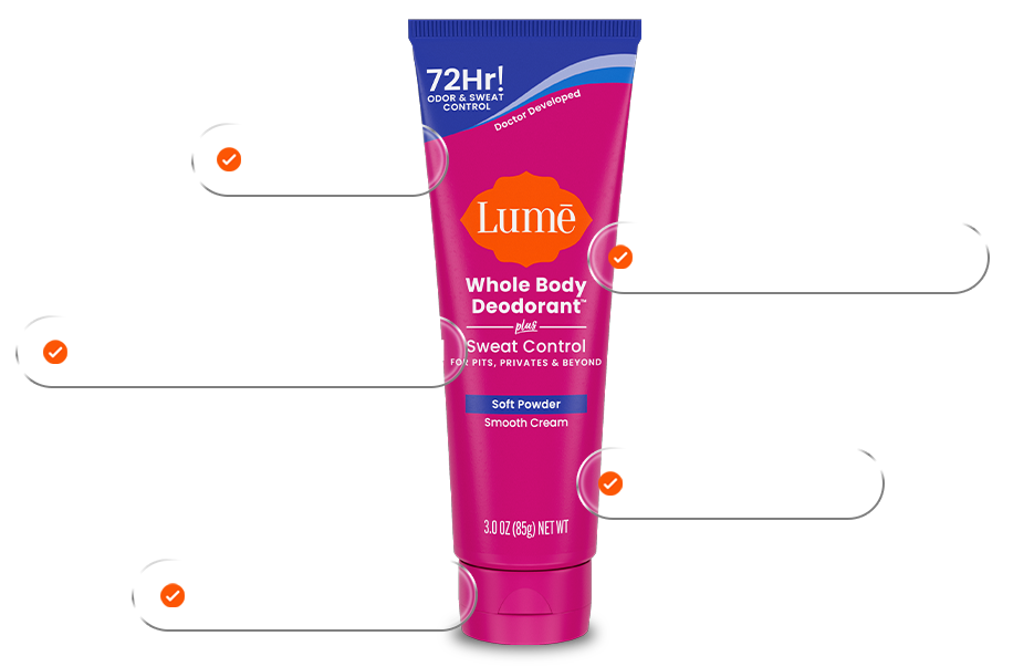 Lume’s Sweat Control Cream stops odor before it starts and absorbs sweat to keep you fresh and dry in places antiperspirants miss like underboobs, thigh folds, and feet.